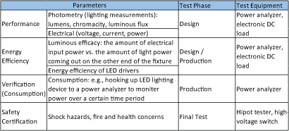 This application note provides an overview of relevant lighting standards and specifications for LED lighting products. It also describes how to test equipment, including power analyzers, DC loads and hipot testers, allow engineers and technicians to easily confirm that their LED lighting products meet the necessary parameters for performance, energy efficiency, consumption verification, quality and safety – before being sent for final compliance testing.