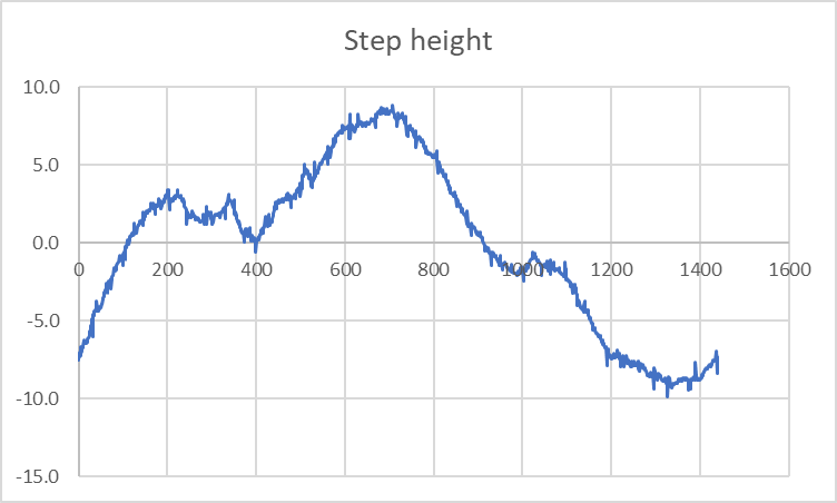 Figure 11. Probe 1 minus Probe 2 (step height) without runout correction.