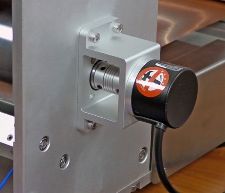 Figure 6. The Quadrature encoder is connected to the roller shaft via a flex coupling.