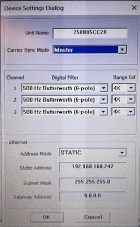 The three probes used in this experiment are ASP-250M-ILA. They have a base measurement range of 250 um which is a little too small for this application. The Digital Accumeasure D400 also has the capability of electronic range extension. We can easily extend the range of the probes by 4 or 5 times to sense larger gaps and provide more gap clearance. The amplifier D400 used has the ability of 4X and 5X range extension. We will also set the frequency response of the amplifier to 500Hz as the maximum roller speed to be used here is 200 RPM or 3.3 Hz. Since the roller diameter is 100 mm the surface velocity at 200 RPM is 1036.2 mm/sec. with a probe sensing area of 3.53 mm we would need an amplifier frequency response of ~ 293 Hz, so 500Hz is fine for this application.