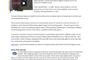 Press Release: Vitrek Adds New 16-Bit Resolution, 4 Channel A/D Card To GaGe Product Line