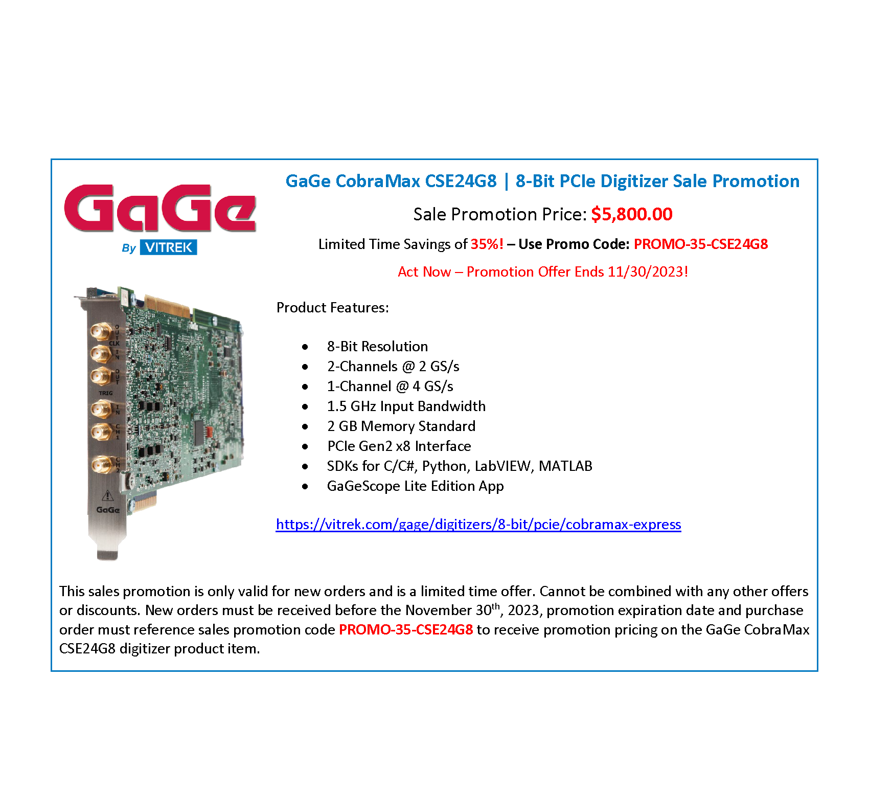 GaGe CobraMax Limited Time Promotion! Ends 11/30/23