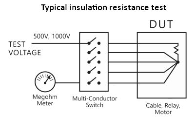 In many instances, insulation resistance must be measured between several conductors. Examples include cable/connector assemblies, multiconductor cables and relays. To make this