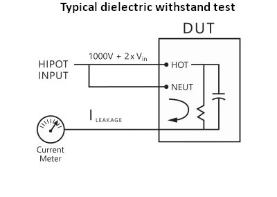 During dielectric-withstand tests, hipot is applied to both conductors and leakage is measured in return circuit through the ground connection.