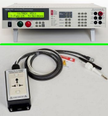 The Vitrek TL-UP1 Test Adapter accepts widely used North American, European and Asian style power cords. The Vitrek TL-UP1 accessory visible here is an example of an accessory device that simplifies ground continuity test setup. With its four-foot leads, the accessory offers easy hipot and continuity test connections of corded products.