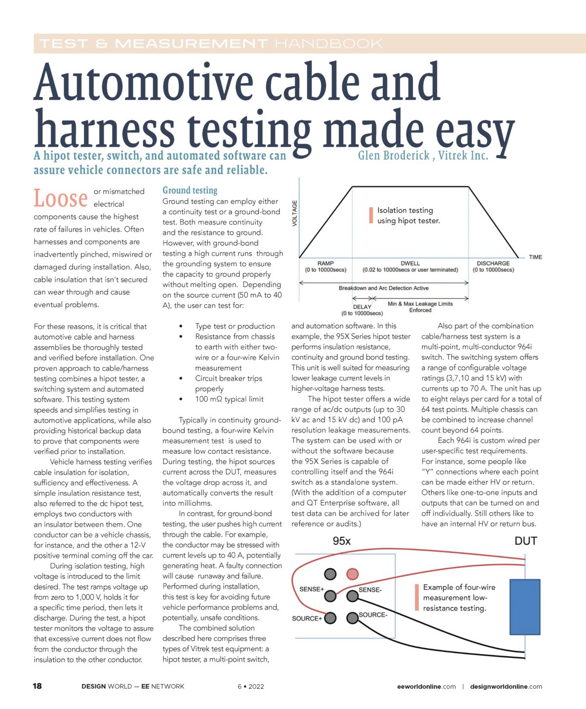 Vitrek provides UL, IEC, CSA certified Hipot testers, ground bond testers, insulation resistance testers, and power analyzers designed for the electrical equipment industry.