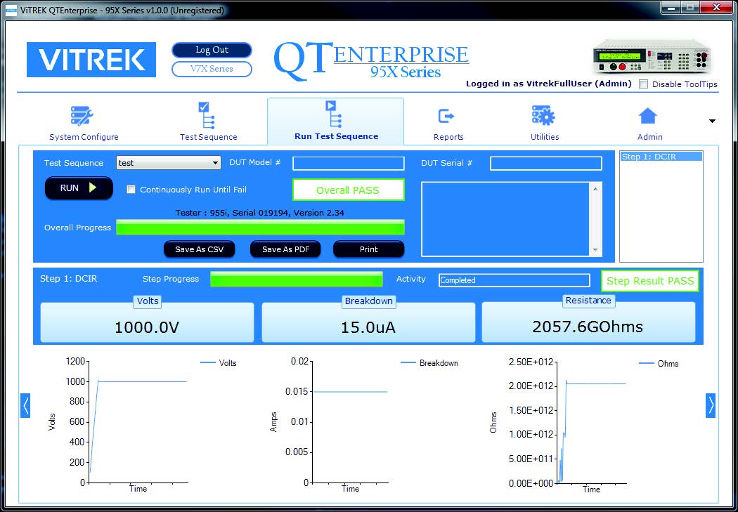 QT Enterprise is the most powerful and flexible electrical safety test automation software available on the market today. QT Enterprise software is available for use with Vitrek V7X and 95X Series Hipot testers, 964i HV Switching system and the 98X Series of IR Testers to streamline your test sequences and record keeping and provide the features you want….and need…for your electrical safety tests.