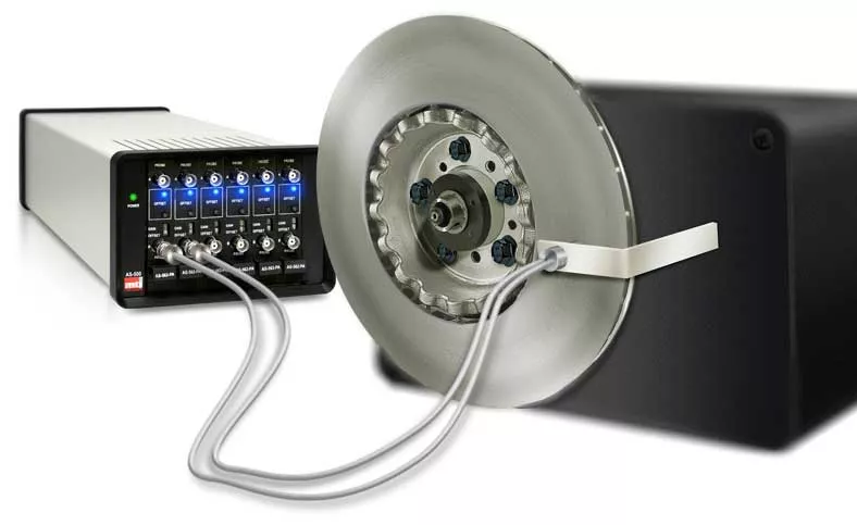 No brake rotor is perfect. Inconsistencies in manufacturing processes introduce thickness variation and runout so it’s important to identify these conditions prior to installation in a vehicle. In order to accomplish this, dynamic measurements of the rotor are required on the production line. Conventional non-contact capacitance displacement sensors are used to monitor the distance between the probe and the rotor while spinning. Unfortunately, rotating targets frequently have an intermittent, uncertain or nonexistent ground path which causes inaccuracies in typical capacitance sensors.