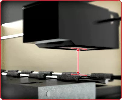 MTI proposed a custom 500 µm range probe with 4X range extension. The probe configuration was a PCR / PSR pancake style probe, so the probe would easily fit under the ink cartridge. Next the system integrator worked with MTI to design a secure probe holding fixture that mated securely to the printer platen/base plate.