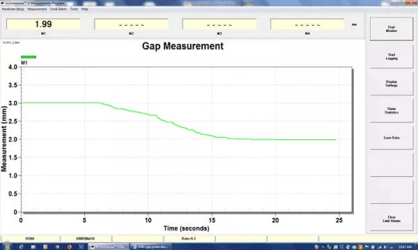 Figure 7. Plot of a changing gap as would be encountered when adjusting a roller gap.