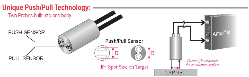 • The push-pull amplifier design cancels common mode electrical noise that may be induced in the target
