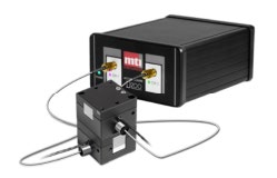 MTI digital capacitance amplifier with MTI ASP-500M-ILA capacitance probe, embedded in the Piezo System Jena PX-100 stage. The digital amplifier offers exceptional accuracy and linearity. Off-the-shelf control programs make it easy to use and tune digital feedback.