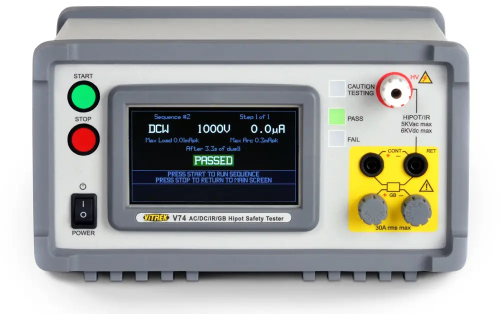 Choose from six low cost models offering AC & DC Hipot to 5KV, leakage current measurement to 100 nano-amps, Insulation Resistance to 450GΩ, Ground Bond to 30 amps and built-in switching. Combine all that with USB, RS232 and Digital I/O interfaces, plus a 2 year warranty.