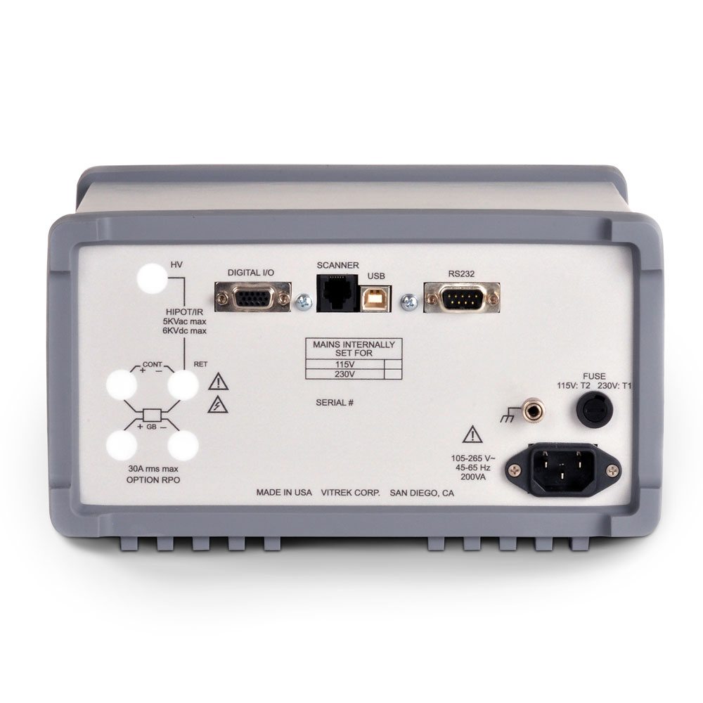 Choose from six low cost models offering AC & DC Hipot to 5KV, leakage current measurement to 100 nano-amps, Insulation Resistance to 450GΩ, Ground Bond to 30 amps and built-in switching. Combine all that with USB, RS232 and Digital I/O interfaces, plus a 2 year warranty.