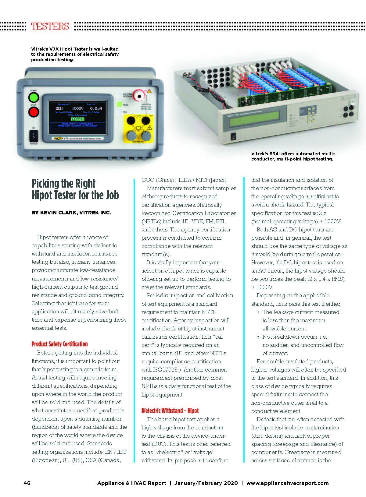 Vitrek featured in Appliance & HVAC Report Click here to download a copy of this article featuring Vitrek Products! Click here to download a copy of this article featuring Vitrek Products! Suzy Abbott2023-05-02T13:17:53-07:00Articles-Vitrek, Brand-Vitrek, Industry-Consumer Products, Industry-Manufacturing, News-Vitrek, Products-Vitrek, z1| Related Posts Whitepaper: Mastering High Voltage: The Importance of Accurate Test Equipment Gallery Whitepaper: Mastering High Voltage: The Importance of Accurate Test Equipment Press Release: Vitrek Launches Next Gen Compliance Test Automation Software Gallery Press Release: Vitrek Launches Next Gen Compliance Test Automation Software Press Release: Vitrek Honored as Top Semiconductor Solution Provider of 2024 Gallery Press Release: Vitrek Honored as Top Semiconductor Solution Provider of 2024 Semiconductor Review: Vitrek Awarded Top Semiconductor Solutions Provider of 2024 Gallery Semiconductor Review: Vitrek Awarded Top Semiconductor Solutions Provider of 2024 What Defines Performance in High-Speed Digitizers? Published in Electronic Products & Technology July 2024 Gallery What Defines Performance in High-Speed Digitizers? Published in Electronic Products & Technology July 2024