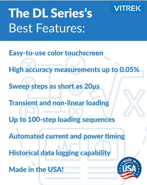 This month, Vitrek introduced a new product to our ever-expanding catalog of high-voltage testing and measurement equipment. Our latest product, the DL Series Electronic DC Load, is intended to improve testing for a series of power supplies, testers, and drivers. The new device is designed to be accurate, flexible, and easy-to-use, rivaling all other similar DC loads on the market with superior performance and results.