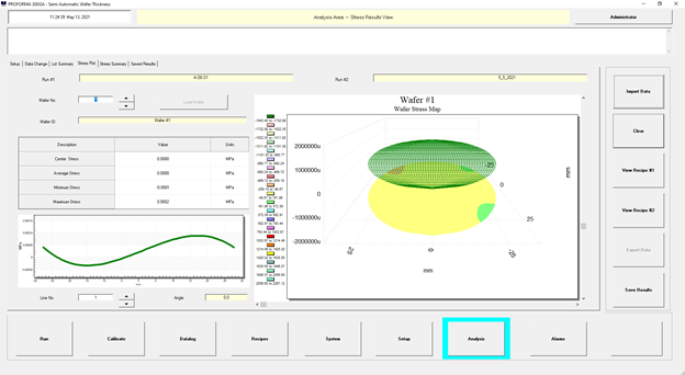 The Proforma 300iSA wafer characterization tool provides a software capability in which a wafer can be analyzed prior to processing and then after processing. The tool then evaluates how the wafer changed and hence, provides the resulting stress analysis.