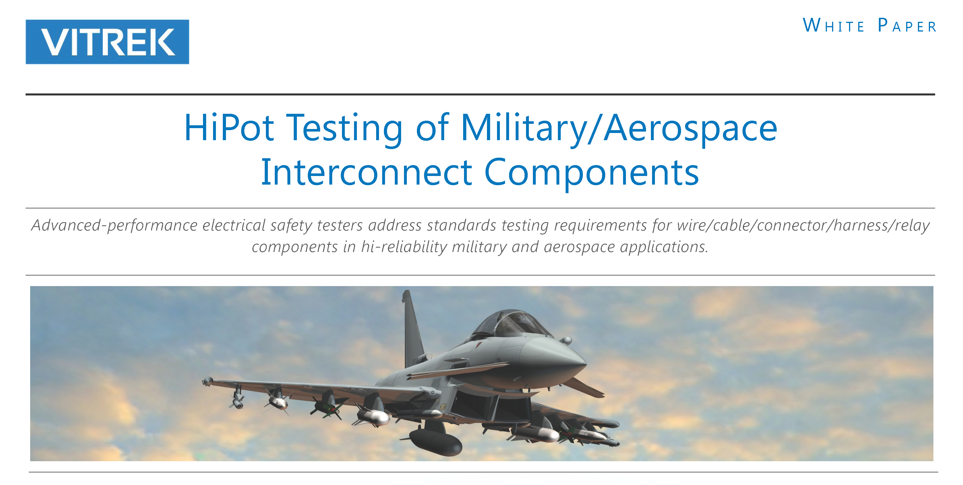 Operational performance and safety are paramount concerns when determining the acceptability of a range of interconnection products in military and aerospace applications. Connectors and relays, wires, wire bundled into cables and harnesses, all must be tested against stringent standards. The number and range of these standards is mind-numbing — and this paper makes no attempt to catalog them all. Rather, notable and salient MIL standards and similar aerospace standards will be used to site the key role that high-performance electrical safety testers, ancillary equipment and software play in effecting reliable and cost-effective compliance testing of components as shown in Figure 1.