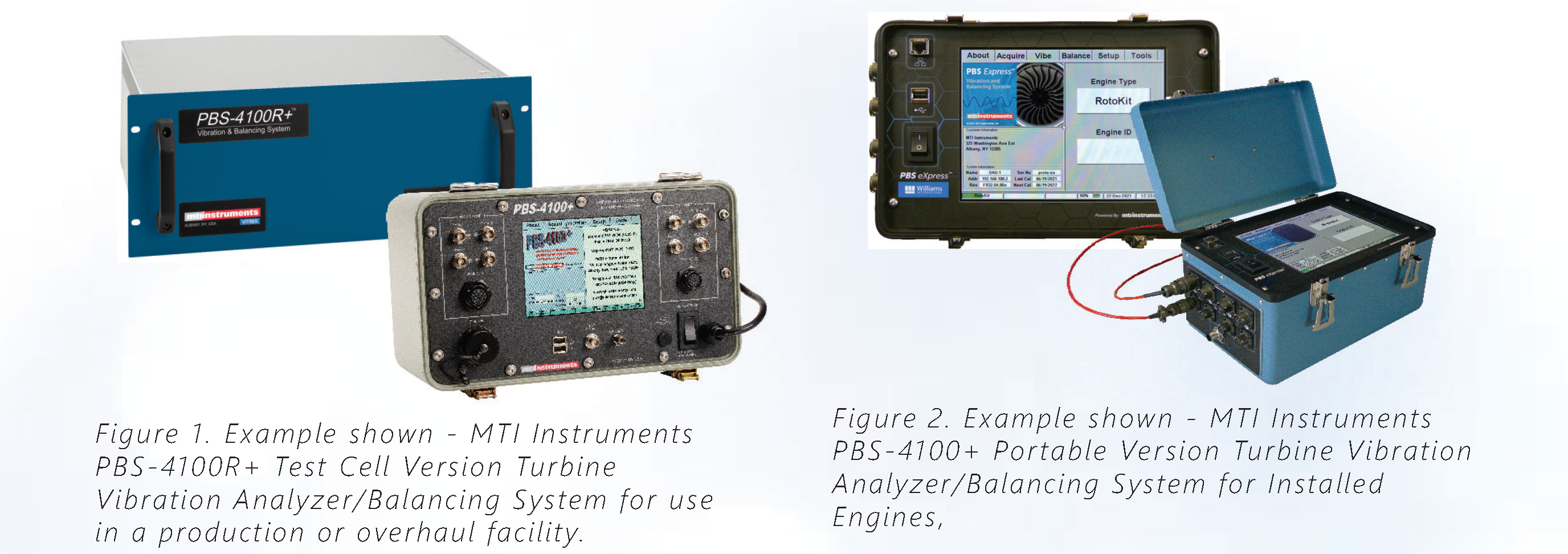 MTI Instruments offers the PBS-4100 series of Engine Vibration/Balancing System. Available in two configurations, the PBS-4100+ is a lightweight, portable system ideal for use on the ground for installed engines (See Figure 2). The test cell version, PBS-4100R+ (Figure 1) is designed for use in a production or